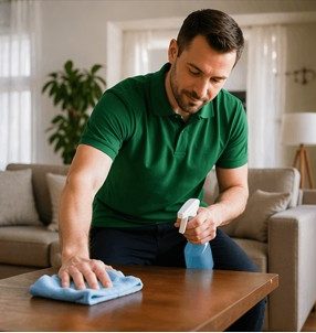 Entretien courant de votre logement : nettoyage des sols, surfaces, sanitaires.